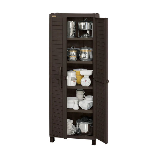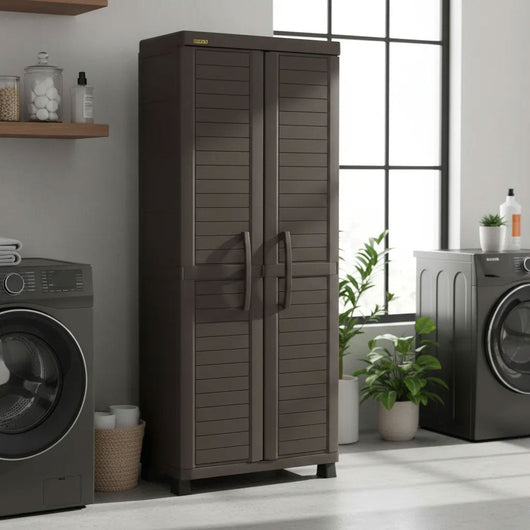 El Armario Grande Barú de Rimax, en elegante color Wengue, es la solución perfecta para organizar y almacenar con estilo y seguridad tanto dentro como fuera de tu hogar. Combina una gran capacidad interior con la resistencia superior del plástico de alta durabilidad, ofreciéndote un mueble práctico, resistente y con una apariencia moderna.