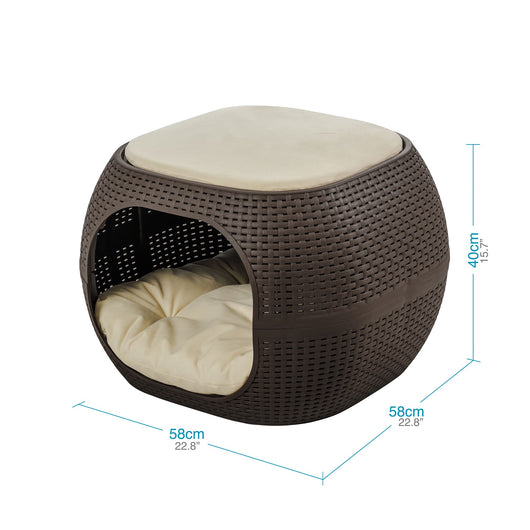 Dale a tu peludo el mejor descanso con la Cama para Mascotas Cerrada Mocca de MQ, diseñada para brindar comodidad, estilo y resistencia. Su diseño moderno tipo rattan combina perfectamente con cualquier espacio del hogar, mientras que sus materiales de calidad garantizan durabilidad y fácil limpieza.