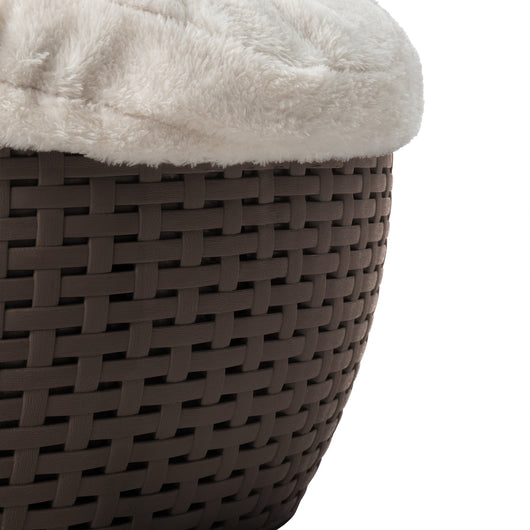 La Cama para Mascotas Premium Mocca de MQ está diseñada para que tu perro o gato descanse con total comodidad. Su estilo tipo rattan en color mocca combina con cualquier espacio del hogar, mientras que su cojín acolchado y lavable brinda suavidad y practicidad en la limpieza.