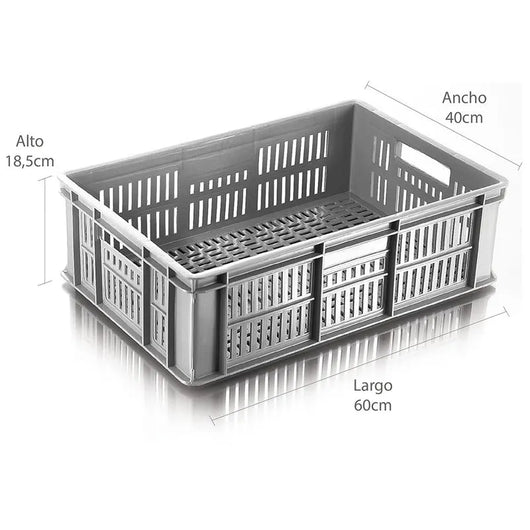 - Caja plástica fabricada en polietileno de alta densidad. Es un producto reutilizable, retornable y reciclable 100%.