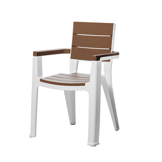 - Silla con diseño moderno y elegante, apariencia en textura tipo madera y patas antideslizantes