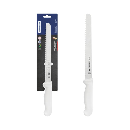 Cuchillo tramontina profesional de 10 pulgadas, ideal para cortes precisos en fiambres, jamones y embutidos. Su hoja en acero inoxidable con tratamiento térmico sub cero y mango anatómico de polipropileno texturizado garantizan un corte firme, seguro y de alta durabilidad.