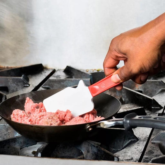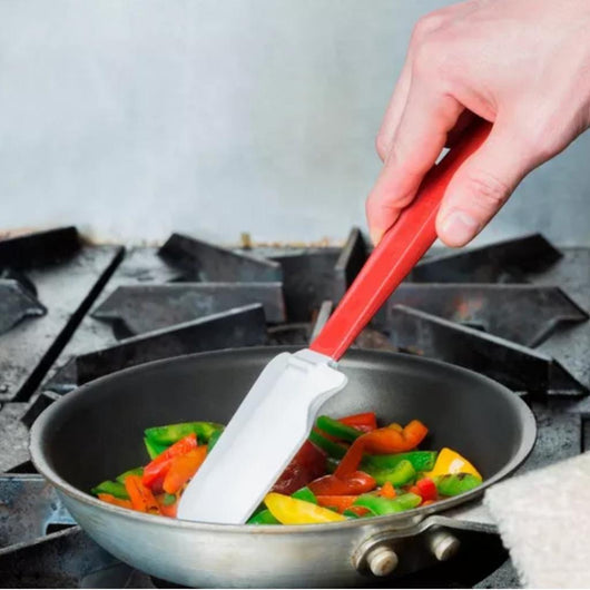 Espátula de silicona rubbermaid 34 cm resistente al calor hasta 260 °c. diseñada para uso general y cocina profesional, su mango de nylon se mantiene frío al tacto, reduciendo el riesgo de quemaduras. Incorpora sistema clean-rest™ que evita el contacto de la espátula con las superficies, brindando mayor higiene. No mancha, no raya y es apta para lavavajillas, ideal para ollas y sartenes.
