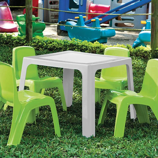 Fabricada en plástico resistente y de fácil limpieza, esta mesa combina durabilidad con practicidad. Su color gris hielo la convierte en una opción neutra y moderna que puede combinar con diferentes sillas y decoraciones. Perfecta para hogares, jardines infantiles o espacios de juego.
