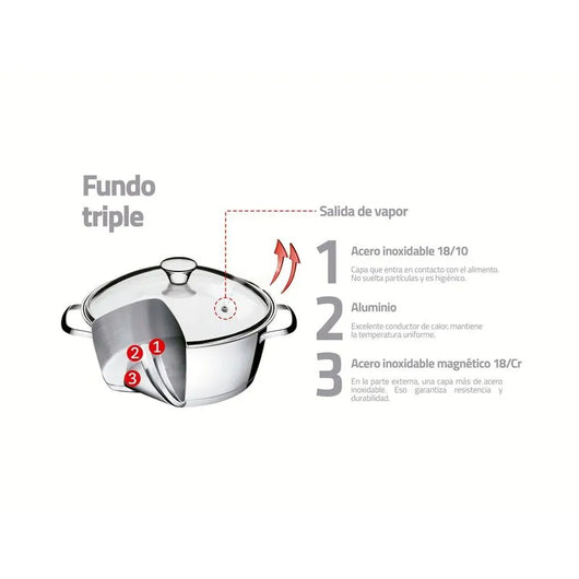 - Fondo triple (acero inoxidable + aluminio + acero inoxidable)