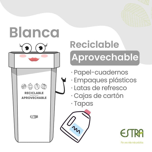 Producto fabricado en materia reciclable y reutilizable con acabados característicos de la marca Estra