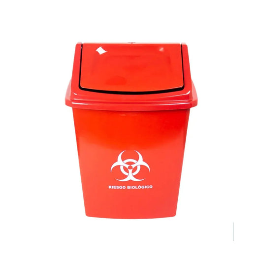 Su tapa vaivén facilita un uso práctico e higiénico, evitando el contacto directo con los desechos. Con una capacidad de 22 litros y fabricada en plástico resistente, asegura durabilidad y cumplimiento de la Resolución 2184 de 2019, que establece el color rojo para este tipo de residuos en Colombia.