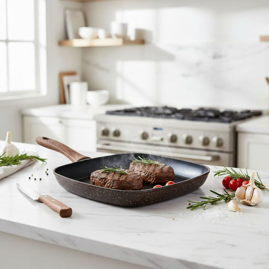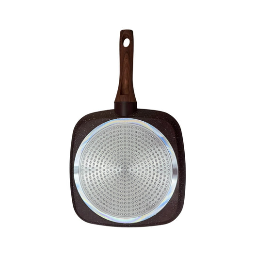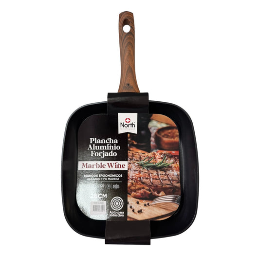 Disfruta de una cocción uniforme y saludable con la plancha asadora marble wine north, ideal para preparar carnes, verduras y pescados con un toque profesional. Fabricada en aluminio de alta pureza con revestimiento antiadherente tipo mármol, garantiza resistencia, durabilidad y una limpieza sencilla. Su mango ergonómico con acabado tipo madera ofrece comodidad y seguridad al cocinar.