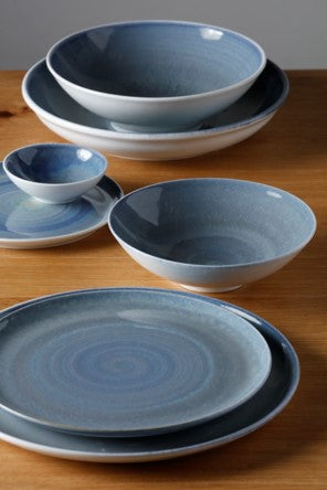 Inspirado en las texturas naturales del Agua Naturales y cristalinas, esta colección nos permite tener en la mesa la apariencia de Azul claro, creando un ambiente Fresco e innovador.