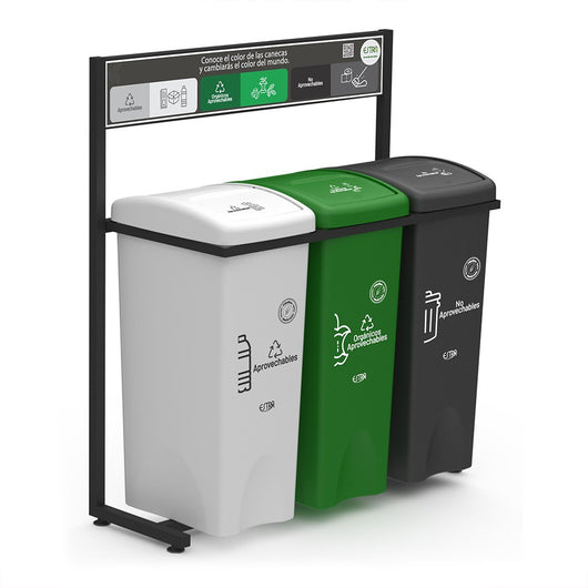 - Doble Compartimento: Permite la separación eficiente de tres tipos de residuos, optimizando el proceso de reciclaje.