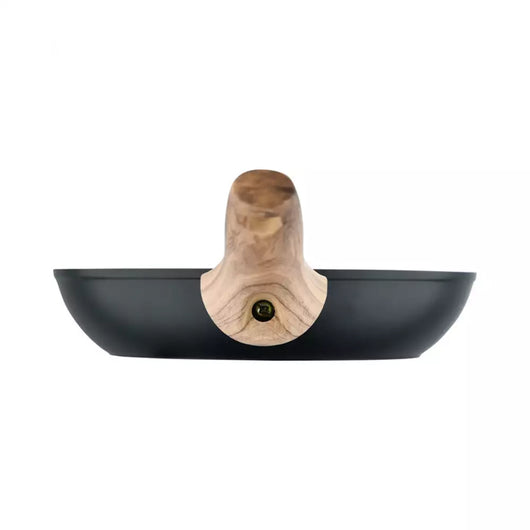 Cuenta con mango ergonómico de baquelita con tecnología cool-soft touch acabado tipo madera, que brinda un agarre cómodo y seguro. Su base de inducción con partículas de acero garantiza una excelente distribución del calor, siendo compatible con todo tipo de estufas: gas, eléctrica, vitrocerámica, halógena e inducción.