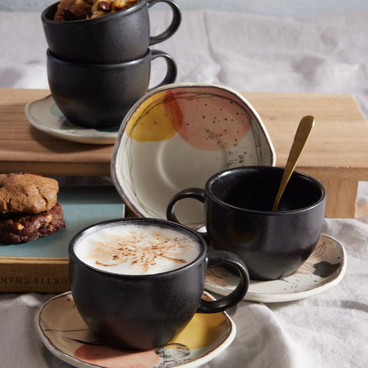 Cada pieza es única gracias a sus detalles de manchones, curvas y jaspeados, que aportan un toque artesanal y moderno. Perfecto para acompañar tus momentos de té o café con elegancia y color.
