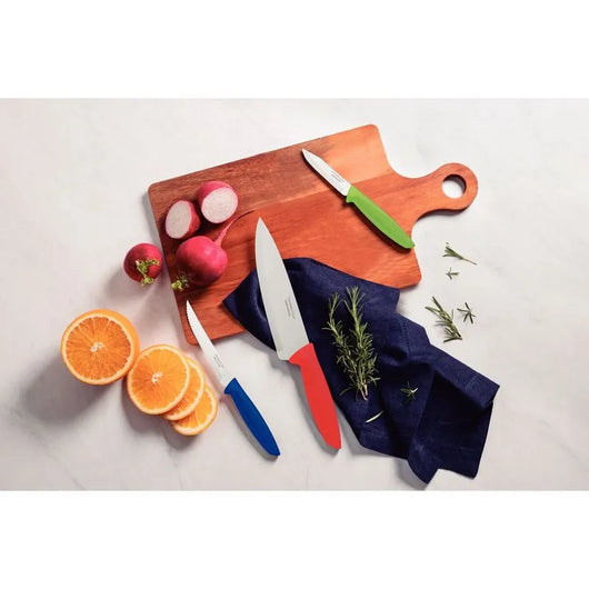 El kit para carnes y legumbres de la línea plenus tramontina combina versatilidad, resistencia y estilo. Fabricado con hojas en acero inoxidable y mangos en polipropileno, es ideal para preparar, cortar y servir carnes, vegetales y legumbres con precisión y comodidad. Un set funcional, moderno y fácil de limpiar, perfecto para el uso diario en el hogar o la cocina profesional.