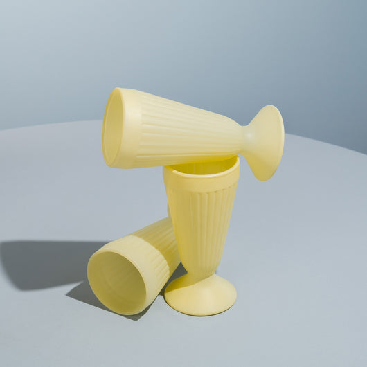 Dale un toque divertido y colorido a tus momentos con el Set de 4 copas para malteada Toy de Cristar, elaboradas en vidrio resistente con un vibrante color amarillo. Su diseño tipo vintage es ideal para servir malteadas, helados, batidos o postres, aportando alegría y estilo a tu mesa.