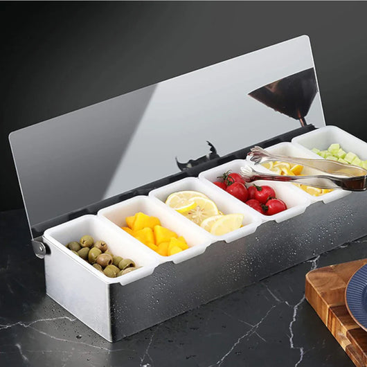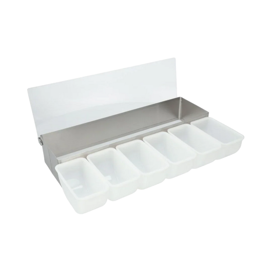 Organiza y presenta tus salsas y aderezos de manera práctica y profesional con este set de 6 condimenteros thunder. Fabricados en acero inoxidable de alta calidad, ofrecen resistencia, durabilidad y una limpieza sencilla, ideales para cocinas comerciales, restaurantes o buffets. Su diseño robusto permite mantener los condimentos organizados y accesibles, optimizando el espacio de trabajo con estilo y funcionalidad.