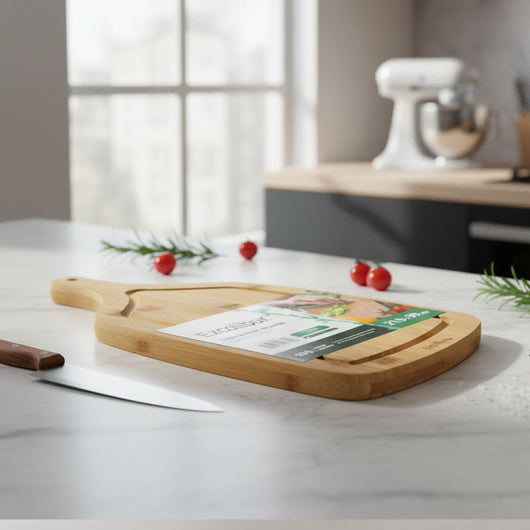 La Tabla de Corte 21.5 x 39 cm Bambú Excalibur es una pieza esencial para quienes buscan combinar funcionalidad, durabilidad y respeto por el medio ambiente. Fabricada en 100 % bambú natural, ofrece una superficie firme y segura para cortar, picar o servir alimentos, protegiendo al mismo tiempo los filos de tus cuchillos.