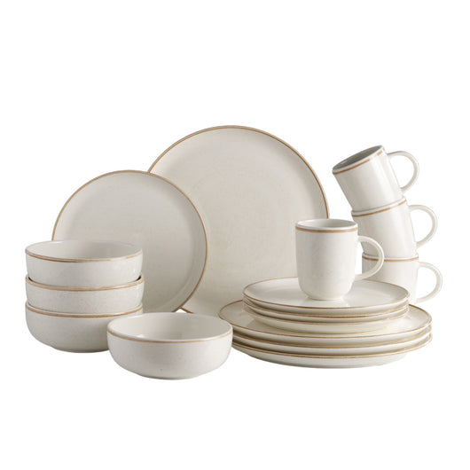 Diseño limpio y luminoso, con formas redondas y tonos claros como protagonistas, esta línea hace gala de una mezcla perfecta entre rusticidad y modernidad. El borde cobrizo da un tono de lujo. Esta vajilla es pintada a mano lo cual le da un toque artesanal único.