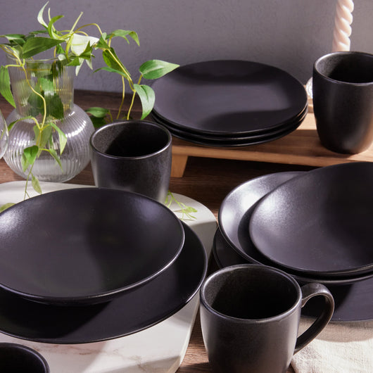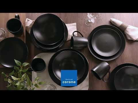 ¡Añade un toque de modernidad a tu mesa! Invierte en la durabilidad y el diseño exclusivo de la Vajilla Ébano de Corona.