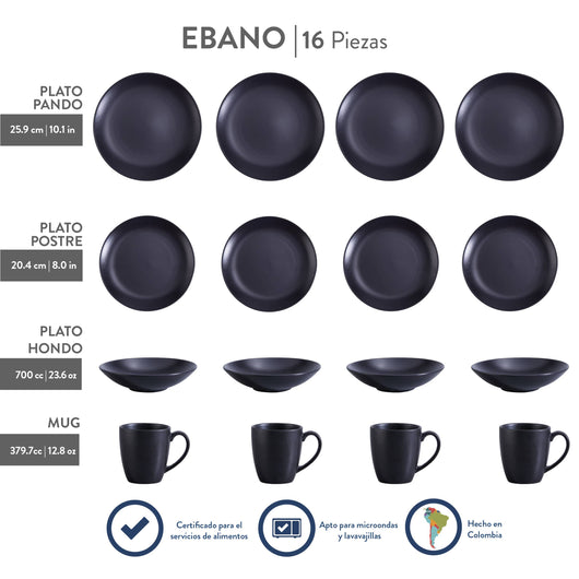Vajilla Ébano 4 Puestos 16 Piezas / Corona