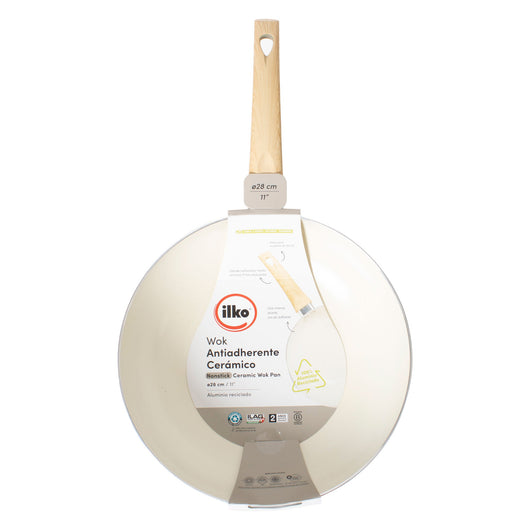 Lleva la versatilidad de la cocina asiática a tu hogar con el Wok de 28 cm White Ceramic de Ilko. Su diseño profundo y revestimiento de cerámica lo convierten en el utensilio perfecto para saltear, freír y guisar, manteniendo tu compromiso con la salud y el medio ambiente.